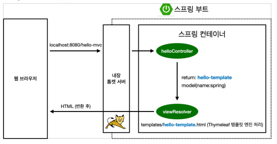 - 이후 ViewResolver를 통해 HTML로 변환 후 웹 브라우저에 출력해준다.