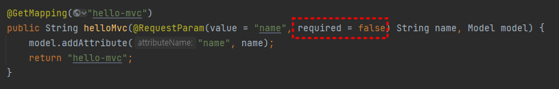 public String helloMvc(@RequestParam(value = "name", required = false) String name, Model model) {