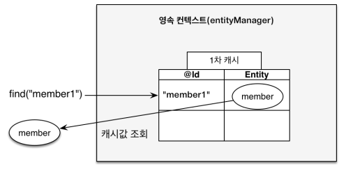 - 영속성 내부에는 1차 캐시가 존재한다.
