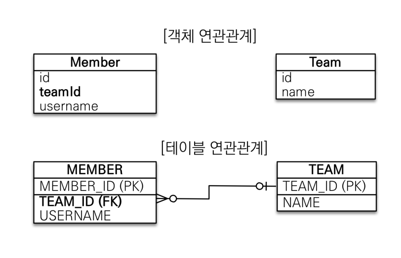 - 객체와 테이블 간에 연관관계를 맺는 차이를 이해해야 한다.