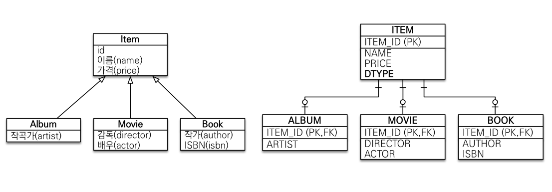 - 슈퍼 타입 서브타입 관계라는 모델링 기법이 객체 상속과 유사