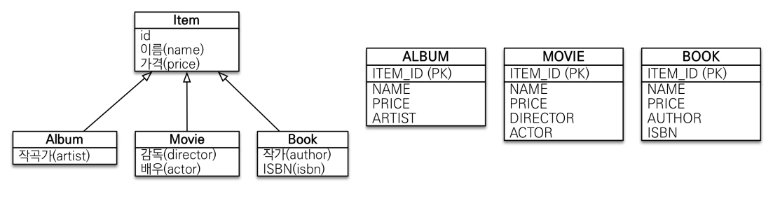 - TABLE_PER_CLASS: 구현 클래스마다 테이블 전략