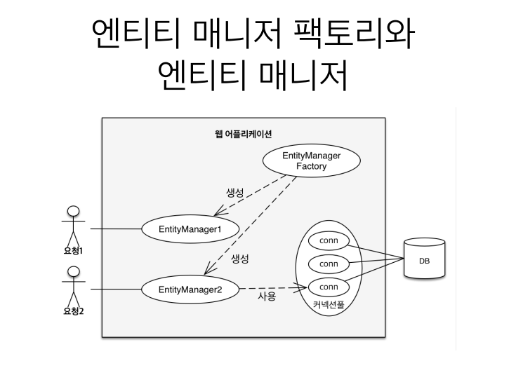 영속성 컨텍스트 JPA를 공부할 때 가장 중요한 2가지가 있다. 객채와 관계형 데이터베이스를 맵핑하는 것 영속성 컨텍스트를 이해하는 것 엔티티 매니저 팩토리와 엔티티 매니저 엔티티 매니저 팩토리를 통해서 고객의 요청이 올 때마다 EntityManager를 생성한다. EntityManager 매니저는 내부적으로 데이터베이스 커넥션을 통해서 DB를 접근한다 영속성 컨텍스트 "엔티티를 영구 저장하는 환경"이라는 뜻 EntityManager.persist(entity) 객체를 DB에 저장하는 거라고 배웠지만 실제로는 깊은 내용이 있다. 엔티티를 영속성 컨텍스트라는 곳에 저장하는 것이다. 엔티티 매니저? 영속성 컨텍스트? 엔티티 매니저를 생성하면 눈에 보이지 않는 영속성 컨텍스트에 담긴다. 엔티티의 생명주기 비영..